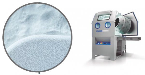 首先要使用DyeMansion的Powershot C設備進行清潔去粉,因為剛完成打印的汽車備件表面附著了很多粉末材料,所以必須要進行清潔處理。