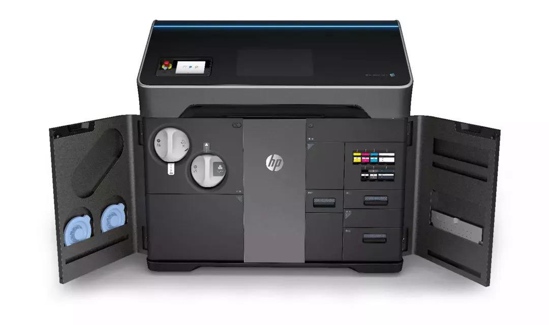 基于惠普?MJF?多射流熔融技術(shù),鋪粉模塊在打印平臺上鋪設(shè)尼龍粉末材料,熱噴頭模塊噴射助融劑和細(xì)化劑。鋪粉模塊上下移動鋪設(shè)一層均勻粉末,熱噴頭模塊左右移動噴射兩種試劑,同時通過兩側(cè)熱源加熱融化打印區(qū)域的材料。MJF 彩色 3D 打印機配備了 CMYK 四色墨盒,可直接 3D 打印全彩模型。