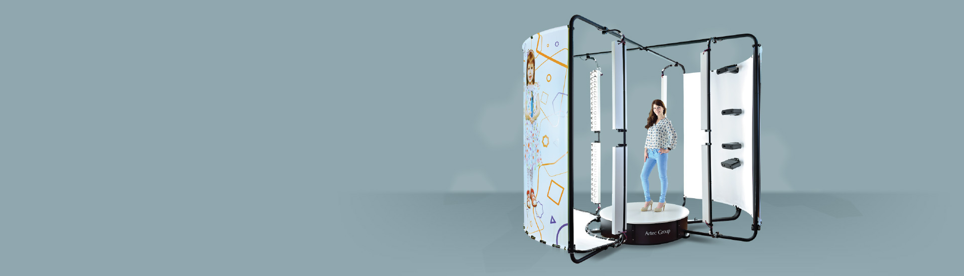 每臺Shapify?Booth 都配有四部寬視野、高清晰度的阿泰克掃描儀,它們圍繞著人體轉動,掃描每一個角度。